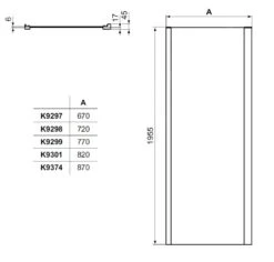 Ideal Standard Connect 2 – Vaste Zijwand 900 Mm, Zwart/helder Glas K9374V3