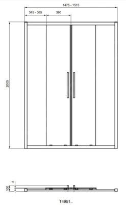 Ideal Standard I.Life – Douche Schuifdeur, Vierdelige, 1500 Mm, Silver Bright/helder Glas T4951EO