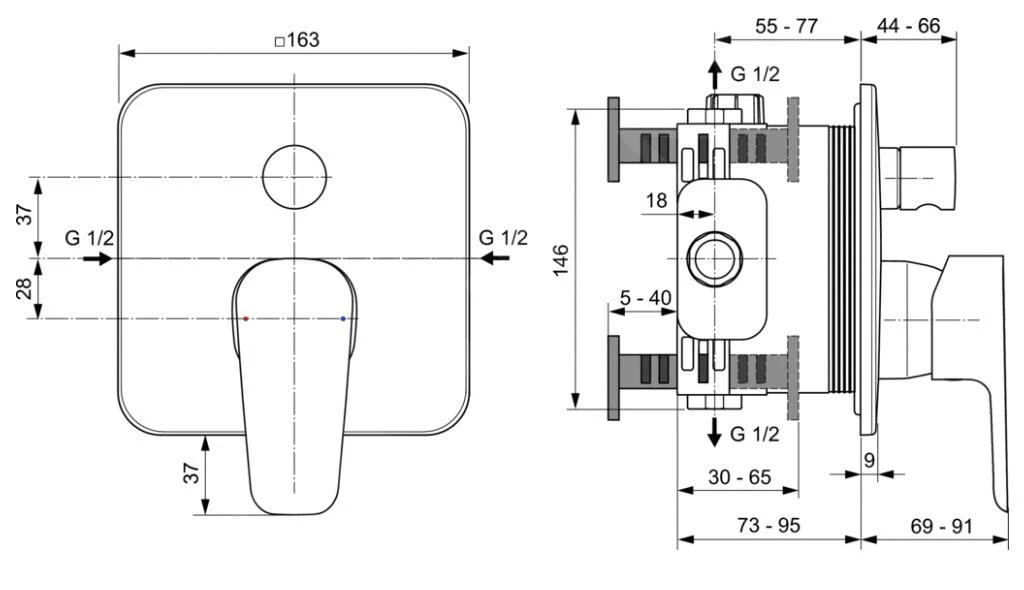 Eengreeps inbouw badkraan zonder inbouwdeel