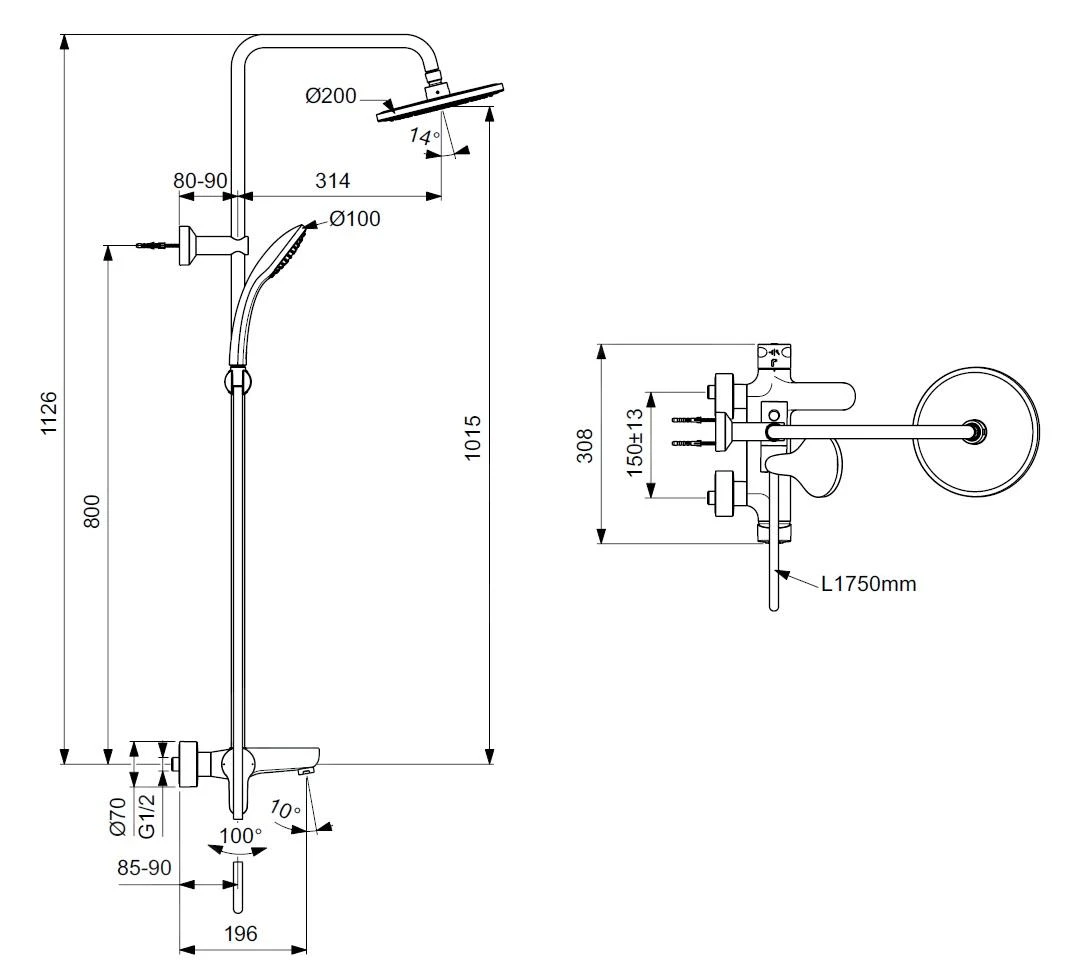- handmatige 3-standenschakelaar geïntegreerd in het kraanlichaam