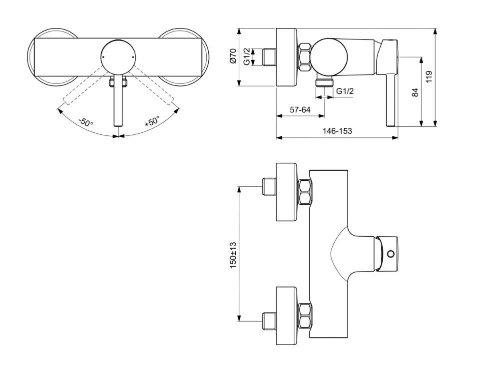 Eengreeps douchekraan zonder toebehoren