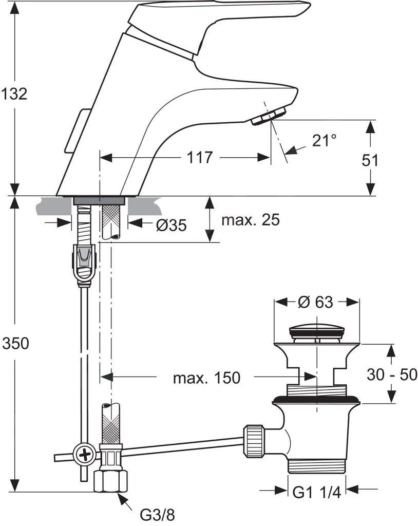 | Montage wijze | 1-gats op wastafel |