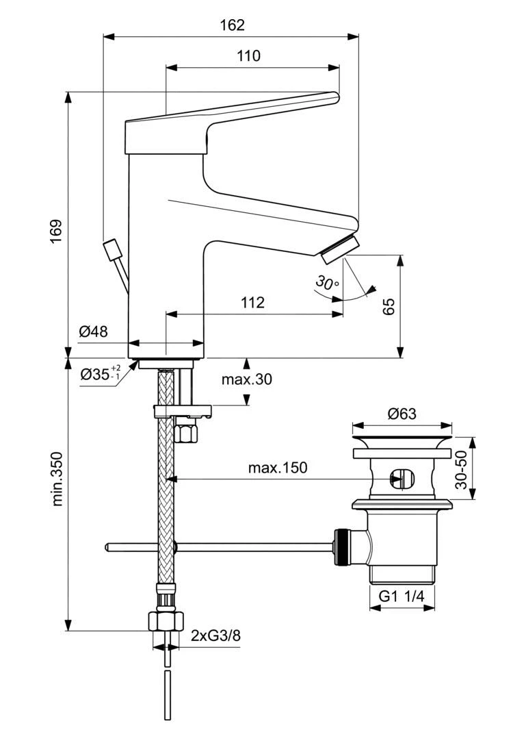 - metalen hendel met gekleurde warm/koudmarkering, 110 mm