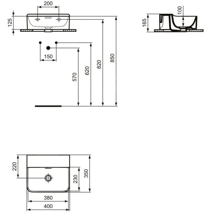 Ideal Standard Conca Ceram – Opbouw Wastafel 1200×450 Mm, Zonder Overloop, Met Kraangat, Wit T384201