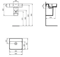 Rechthoekige wastafel voor opbouw op plaat/kast