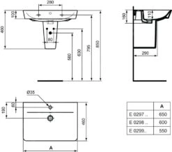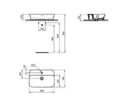 Rechthoekige wastafel voor opbouw op plaat/kast