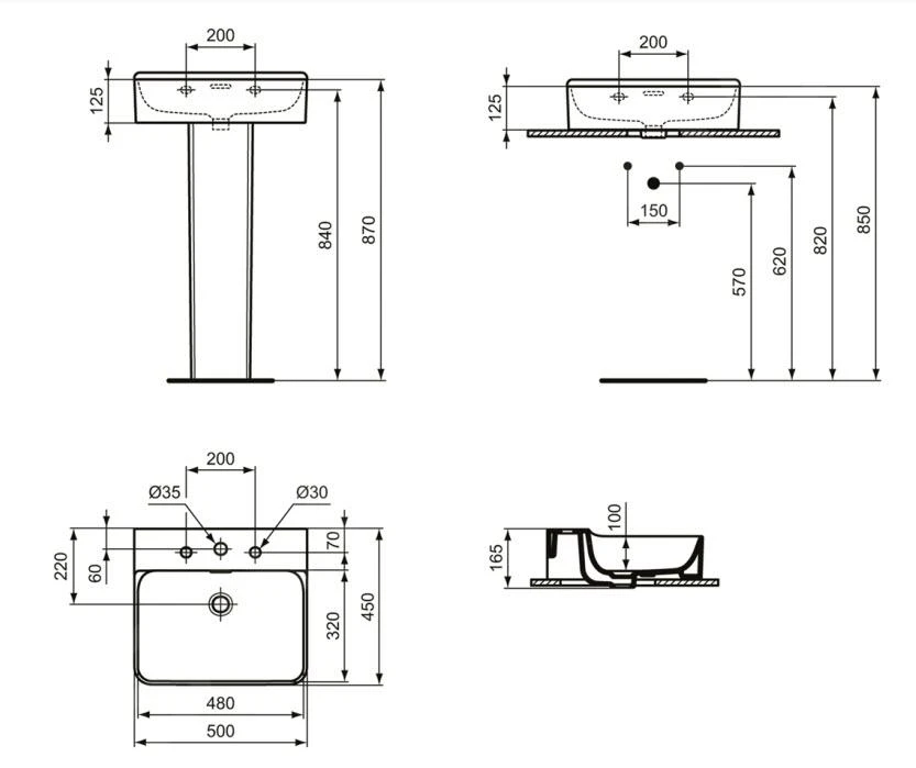 Afvoerafdekking en bevestigingsset niet meegeleverd.
