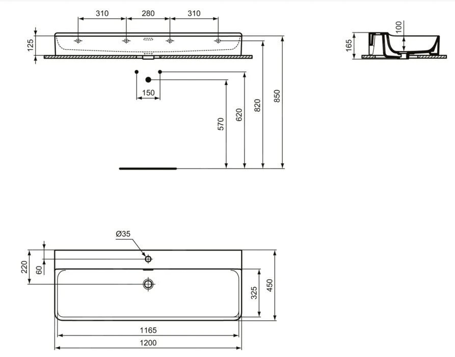 - afmetingen: 1200 × 450 × 165 mm