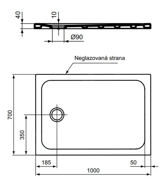 - één zijde van de douchebak (tegen de muur) is niet geglazuurd