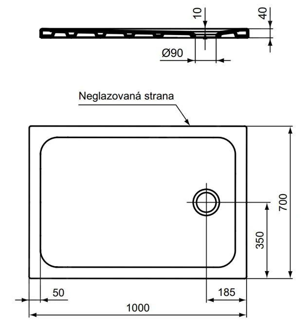 - één zijde van de douchebak (tegen de muur) is niet geglazuurd