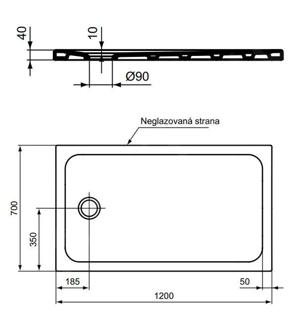 - één zijde van de douchebak (tegen de muur) is niet geglazuurd