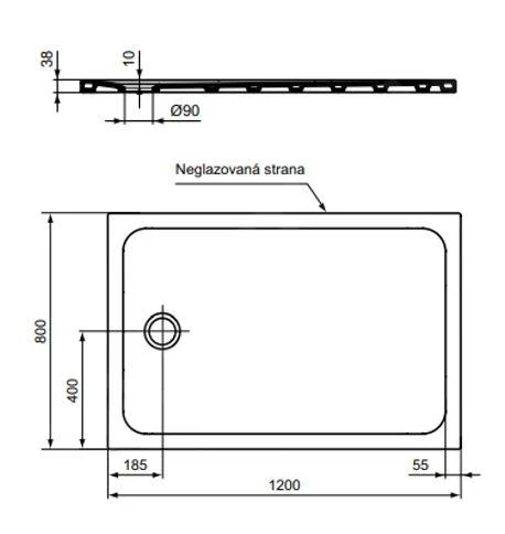 - één zijde van de douchebak (tegen de muur) is niet geglazuurd