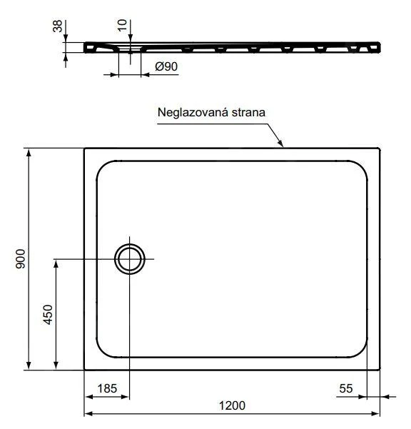 - één zijde van de douchebak (tegen de muur) is niet geglazuurd