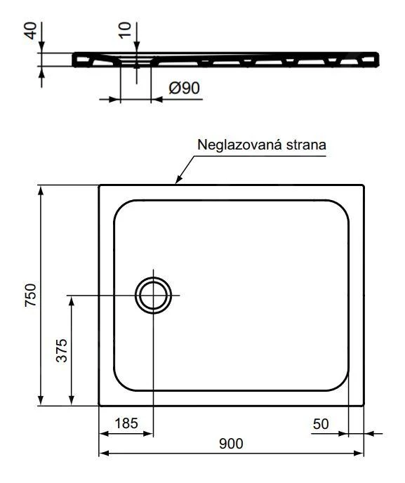 - één zijde van de douchebak (tegen de muur) is niet geglazuurd