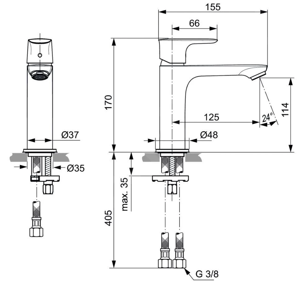 - cartouche Ø 25 mm met keramische schijven (kraan druppelt niet)