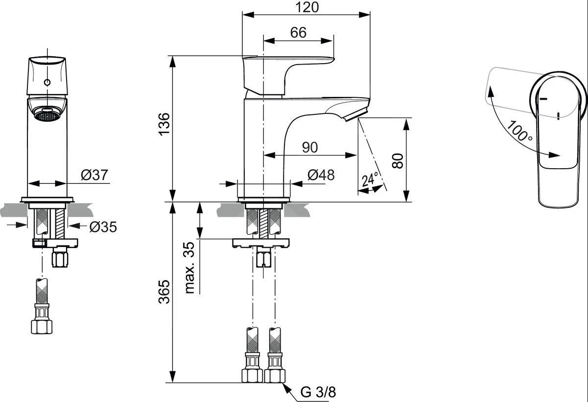 - BlueStart technologie – bespaart energie en water; als de hendel in de middenpositie staat, stroomt er koud water uit de kraan