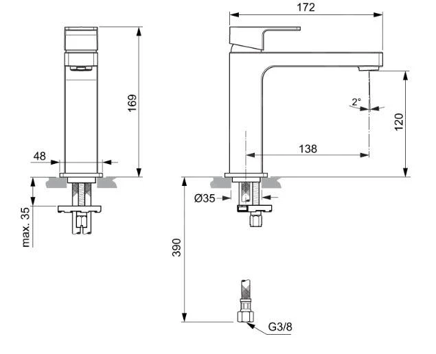 - doorstroming bij 3 bar 5 l/min