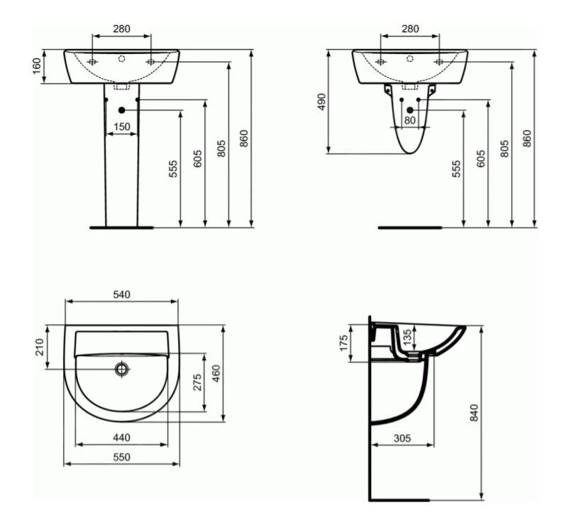 Halfzuil voor wastafel V1340, V1440 a V1540