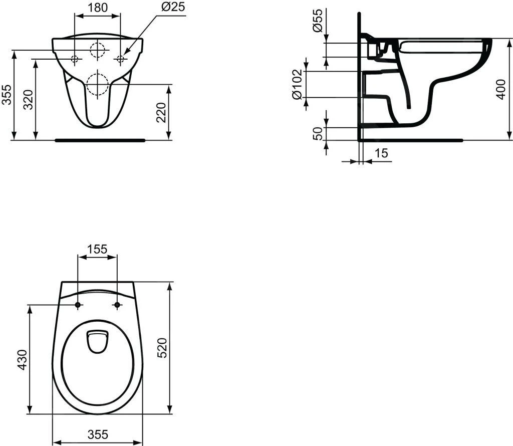 - voor inbouwreservoirs met een spoelcapaciteit 4,5 l of voor inbouw drukspoeler 3/4 “