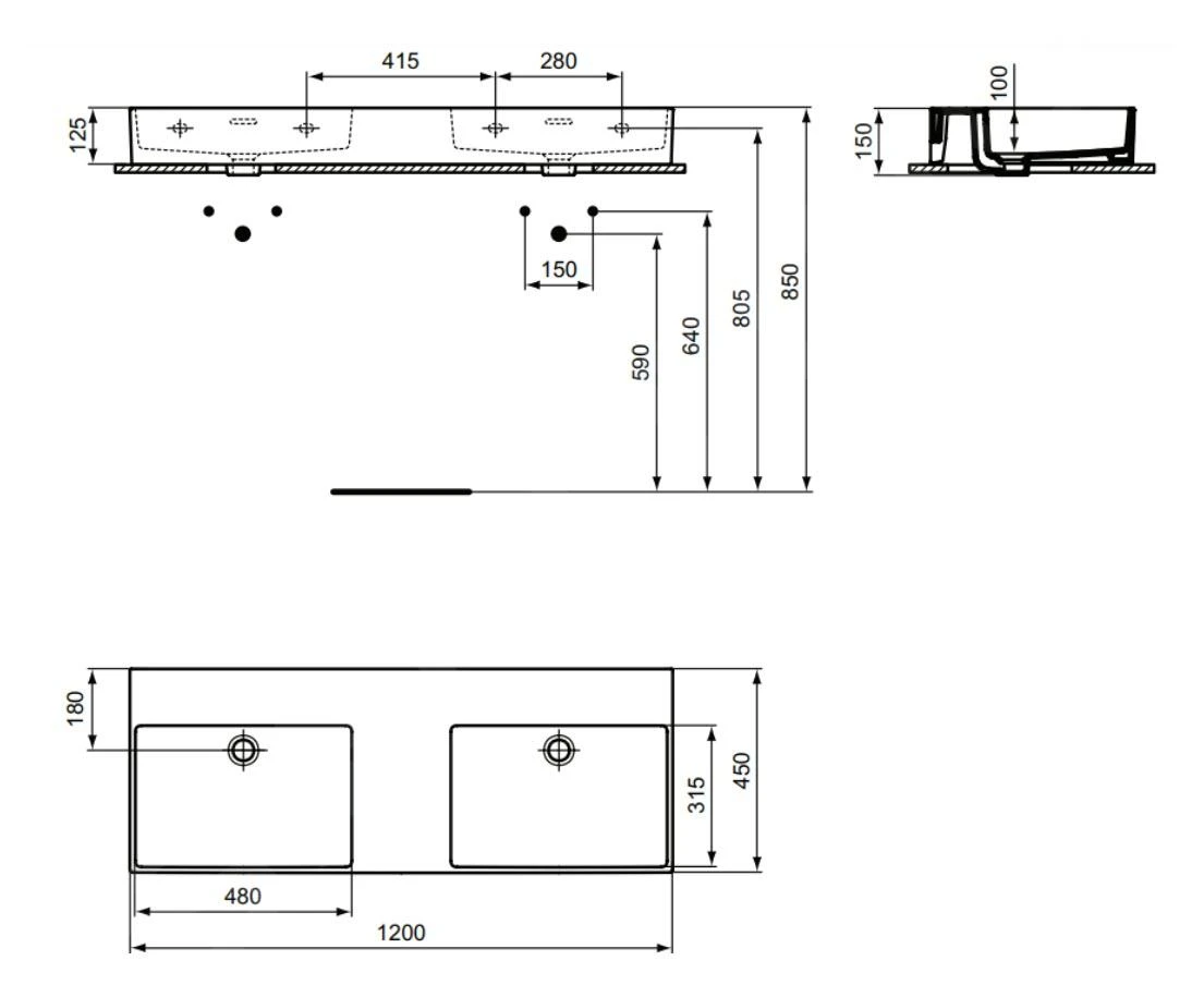 Afvoerafdekking en bevestigingsset niet meegeleverd.