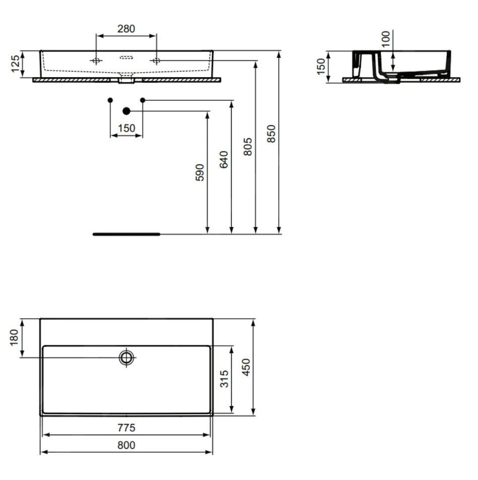 Afvoerafdekking en bevestigingsset niet meegeleverd.