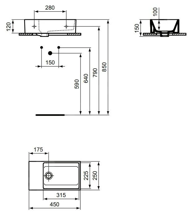 Ideal Standard Conca Ceram – Wastafel 500×450 Mm, Zonder Overloop, Met 3 Kraangaten, Wit T378601