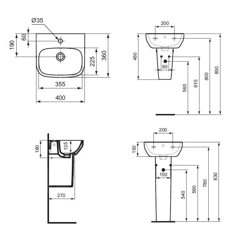 Ideal Standard Conca Ceram – Wastafel 500×450 Mm, Zonder Overloop, Met 3 Kraangaten, Wit T378601