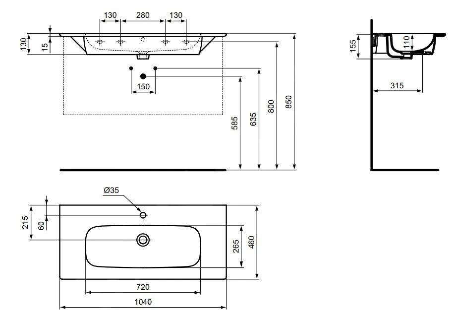 - installatie door het ophangen aan de muur of met een wastafelonderkast