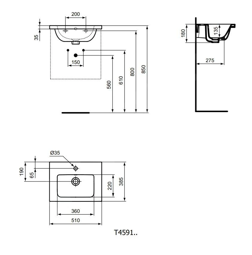 Wastafel geschikt voor combinatie met een wastafelonderkast of een zuil / halfzuil