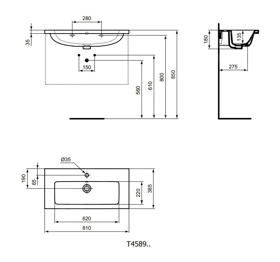 Wastafel geschikt voor combinatie met een wastafelonderkast of een zuil / halfzuil