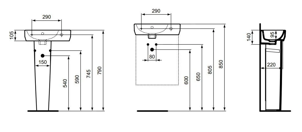 Ideal Standard Conca Ceram – Wastafel 500×450 Mm, Zonder Overloop, Met 3 Kraangaten, Wit T378601
