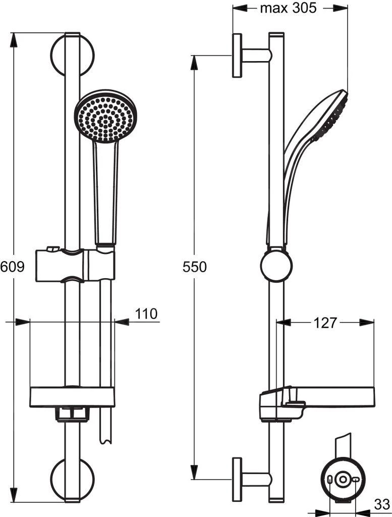 Douchsetset met douchekop, douchehouder, douchestang en doucheslang