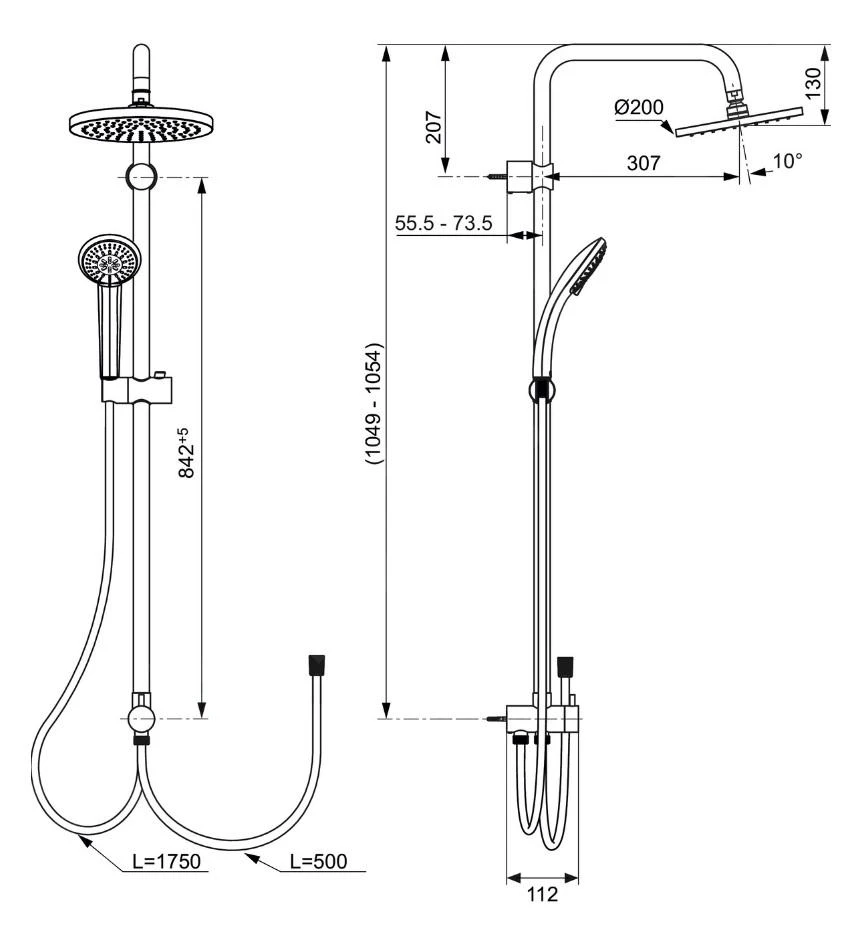 douchestang, keramische 2-weg schakelaar en douchehouder