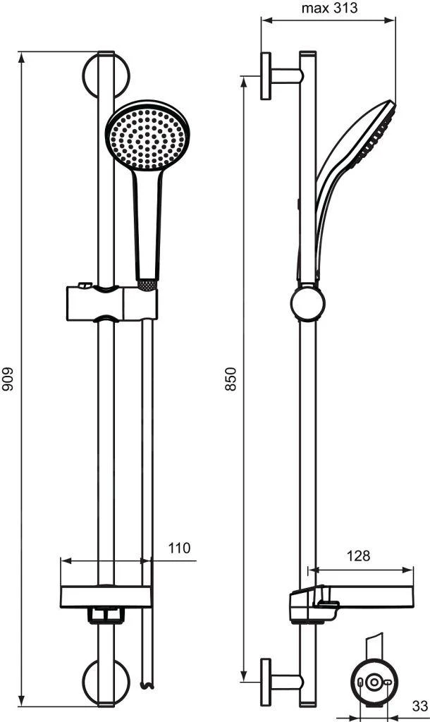 Ideal Standard Connect 2 – Schuif Douchedeur, 4-delig, 1600 Mm, Zwart/helder Glas K9282V3