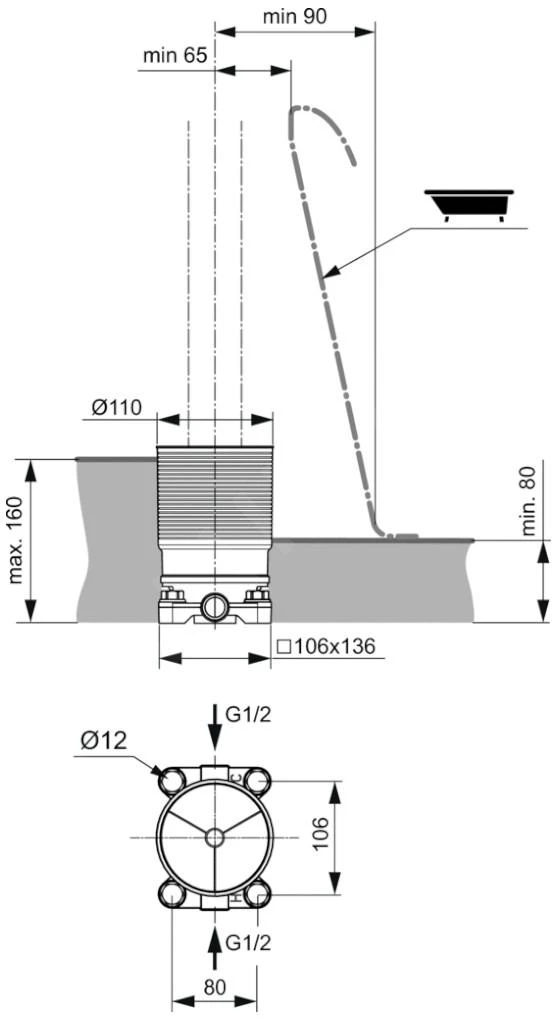 Verborgen inbouwdeel voor installatie in de vloer