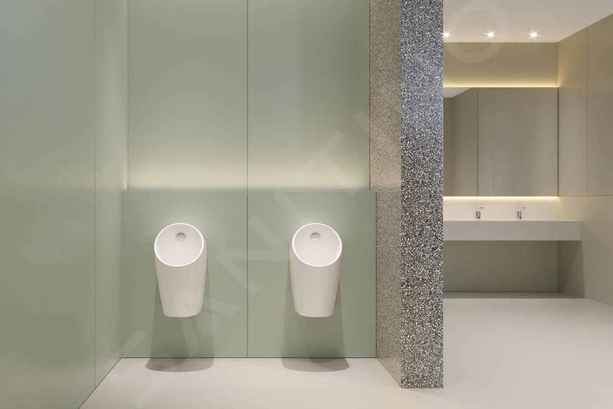 - Anti-splash geometrie ter beperking van spatten rond het urinoir en ter voorkoming van vervuiling van de ruimte eromheen