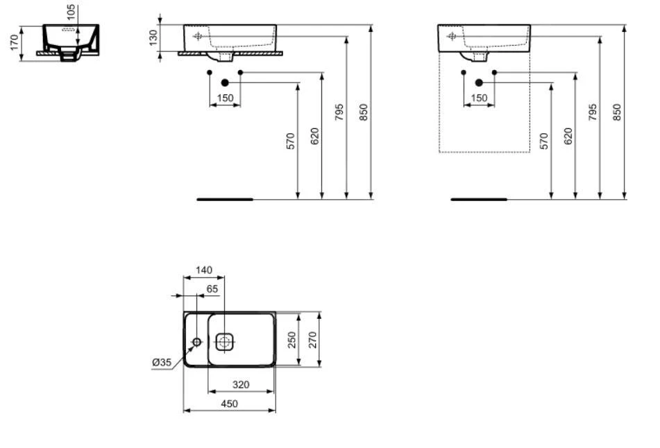 Ideal Standard Connect – Inbouwwastafel, 420×350 Mm, Met Overloop, Wit E505501