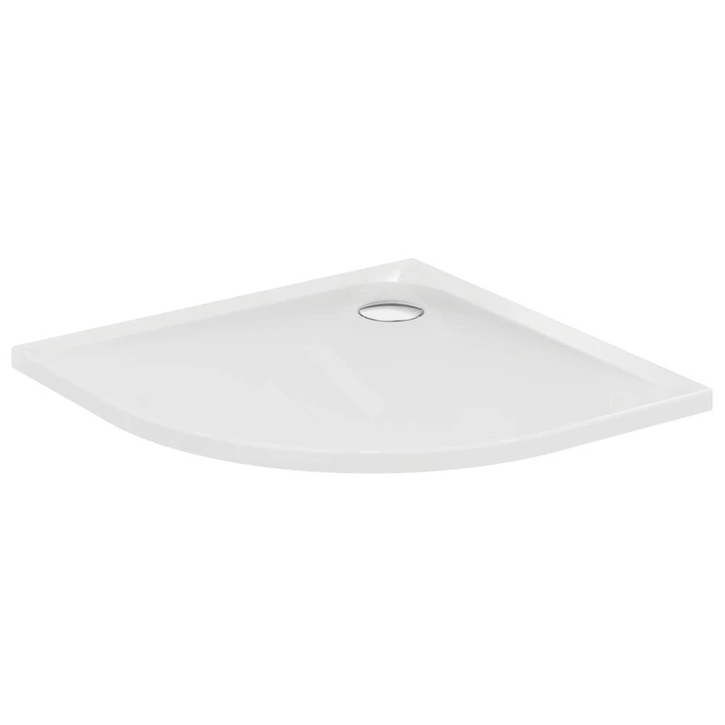 Ultra Flat kwartronde douchebak van sanitairacryl. Vervaardigd conform DIN 14527.