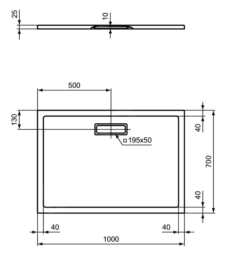- afmetingen: 1000 x 700 x 25 mm (BxDxH)