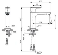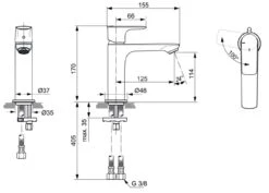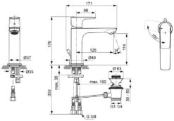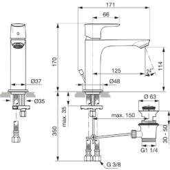 Ideal Standard Connect Air – Grande Slim Wastafelkraan Met Waste, BlueStart, Magnetic Grey A7013A5