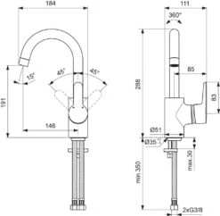 Ideal Standard Connect Air – Wastafelkraan Slim Met Draaibare Uitloop En Waste, Chroom A7020AA