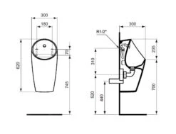 Ideal Standard Urinoirs – Urinoir, Wateraansluiting Achteraan, Met Ideal Plus, Wit E5676MA