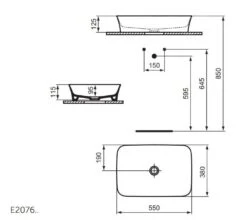 Ideal Standard Ipalyss – Opbouw Wastafel, 550×380 Mm, Zonder Overloop, Mink E2076V8