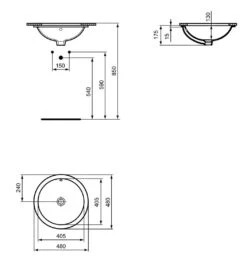 Ideal Standard Connect – Onderbouwwastafel, Diameter 480 Mm, Met Overloop, Ideal Plus, Wit E5054MA