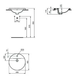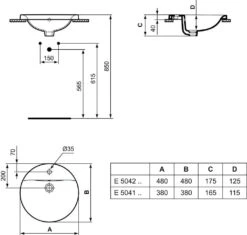 Ideal Standard Connect – Inbouwwastafel, Diameter 380 Mm, Met Overloop, 1 Kraangat, Wit E504101