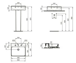 Ideal Standard Conca Ceram – Opbouw Wastafel 500×450 Mm, Met Overloop, Met 3 Kraangaten, Wit T381301